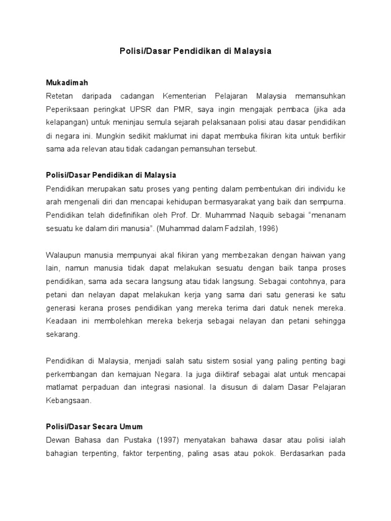 Latar belakang pendidikan di malaysia sejarah awal dan semasa pendidikan di malaysia penjajahan british selepas merdeka• sebelum kedatangan british: Dasar pendidikan kebangsaan 1961 digubal berdasarkan laporan razak 1956 dan laporan rahman talib 1960. Apabila jawatankuasa kabinet ditubuhkan dan bidang tugasnya ditetapkan. Atas kesedaran inilah lahirnya dasar pendidikan kebangsaan, 1957. Perpaduan dalam kalangan penduduk tanah melayu yang terdiri daripada pelbagai bangsa dan agama dapat dicapai melalui dasar pendidikan kebangsaan apabila pada tahun 1970.