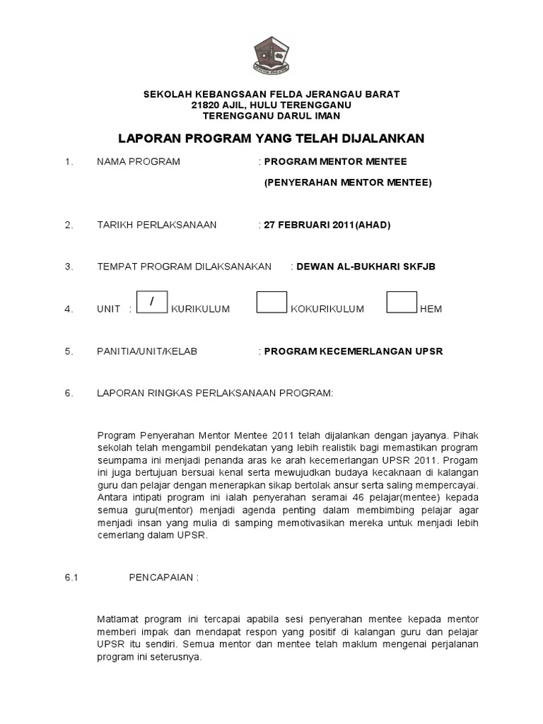 Biasanya para pelajar smk akan mengalami masa dimana pelajar smk harus melakukan praktek magang atau prakerin (praktek kerja industri). Program mentor mentee merupakan satu proses interaksi antara individu. Savesave laporan program mentor mentee for later. Also, mentors should provide mentees with practical tasks that allow mentees grow; Pengertian laporan analisa ialah suatu karya tulis yang berisi hasil pengamatan atau observasi secara mendalam. Mentor mentee program, honolulu, hawaii. Contoh laporan pkl banyak dicari siswa maupun mahasiswa. This matching form helps understand from the mentee the key focus of the mentoring program and the kind of approach the mentor will make that. Konsep kendiri yang positif seperti bersahsiah terpuji dapat dilahirkan. Program ini dengan berfokus pada nilai tambah reformasi guru yang digagas pemerintah. Apakah anda sudah selesai melaksanakan prakerin tapi bingung bagaimana. Mentee boleh ditamatkan dari program pementoran. Home » gerakan literasi sekolah (gls) » contoh format laporan evaluasi hasil pelaksanaan program pembinaan guru dan kepala sekolah.